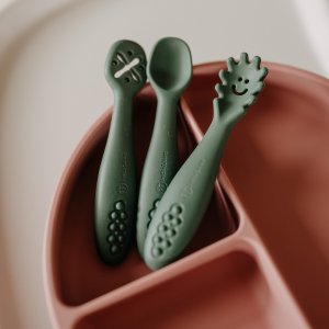 Série TAKE&MATCH TAKE what you need and MATCH as you like. Vyberte si výrobky, které vaše dítě potřebuje, a slaďte je barevně podle svých představ. Jídelní sety jsou k dispozici v barvách inspirovaných nejnovějšími trendy a sestaveny tak, aby každá barva dokonale ladila s ostatními. Můžete tedy libovolně kombinovat všechny druhy výrobků pro bezpečné papání vašeho děťátka a vytvořit si tak vlastní jedinečnou kolekci. Díky naší sérii se krmení vašeho dítěte stane nejen velmi jednoduchým, ale také estetickým a příjemným. TAKE&MATCH silikonové tréninkové lžičky sada 3 ks Tréninkový set sestávající ze tří lžiček umožňuje vašemu děťátku objevit radost z jídla. Každá lžička je pečlivě navržena tak, aby se papání stalo zážitkem. Set obsahuje polévkovou lžičku, lžičku s výstupky pro snadné uchopení těstovin a lžičku pro namáčení, která je ideální na jogurty nebo pěny. Některé lžičky v setu mají jemné otvory, které umožňují kontrolované podávání jídla. Díky tomu se děťátko může naučit jíst samostatně, zkoumat různé tvary a textury, což stimuluje jeho smysly a rozvíjí smyslové schopnosti. Rodič si může být jist, že jeho děťátko nepolyká příliš velká sousta najednou. Tento set je nejen pomůckou, ale také zdrojem radosti, která vašemu děťátku zpříjemní každodenní stravování. Set je vyroben z potravinářského silikonu bez obsahu BPA. Díky tomu může vaše dítě s příborem jíst teplé, studené a různé konzistence jídel. Díky pružnému silikonu jsou lžičky ideální pro citlivé dásně malého dítěte. Lžičky jsou vhodné pro děti od 6 měsíců, které se seznamují s prvními příkrmy, a pro ty, které se již úspěšně učí jíst samy. Zaoblené tvary a malé rozměry usnadňují děťátku jejich uchopení a papání. Lžičky lze sladit s jiným výrobkem z řady TAKE&MATCH ve stejné nebo ladící barvě.