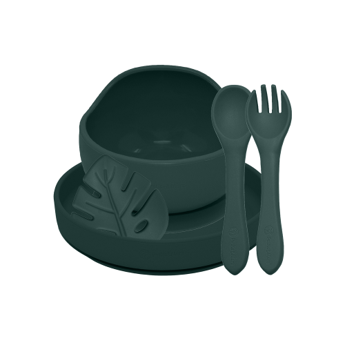 PETITE&MARS Set jídelní silikonový TAKE&MATCH 4 ks Misty Green 6m+