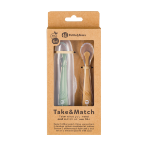 Sada na krmení TAKE&MATCH je navržena tak, aby každé jídlo bylo zábavným zážitkem. Každá lžička byla pečlivě tvarována tak, aby povzbuzovala vaše dítě k prozkoumání jídla a rozvíjení samostatnosti při jídle. Flexibilní silikonový materiál umožňuje lžičkám mírně se ohýbat, přizpůsobovat se pohybům vašeho dítěte a usnadňovat samostatné krmení. Měkký potravinářský silikon je šetrný k citlivým dásním a prvním zoubkům, zatímco ergonomická rukojeť pohodlně padne do malých ruček.
