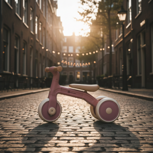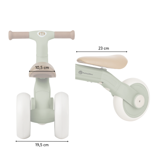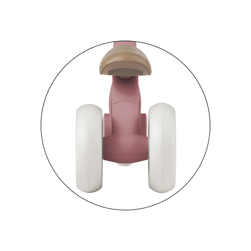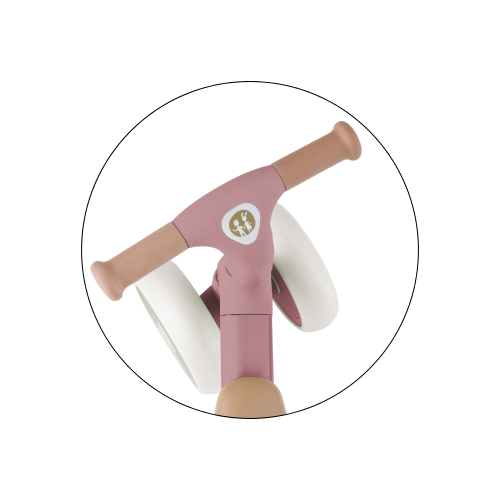 Bingo má otočná řídítka, dvě nastavitelné výšky sedla a váží jen 2,3 kg, takže ho rodiče bez problémů přenesou – i s taškou nebo dítětem v druhé ruce. Pěnová kolečka jsou tichá a zvládnou interiér i venkovní povrch. Celý design působí moderně, jemně a zároveň nadčasově.