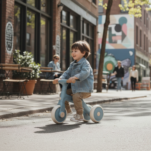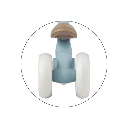 Bingo má otočná řídítka, dvě nastavitelné výšky sedla a váží jen 2,3 kg, takže ho rodiče bez problémů přenesou – i s taškou nebo dítětem v druhé ruce. Pěnová kolečka jsou tichá a zvládnou interiér i venkovní povrch. Celý design působí moderně, jemně a zároveň nadčasově.