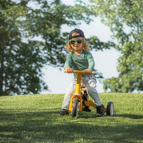 Multifunkční tříkolka určená pro děti od 1,5 do 5 let nebo do 25 kilogramů. Je to nejen dopravní prostředek pro přesun a učení se rovnováhy, ale také společník pro rostoucí dítě během mnoha vývojových fází. Promyšlené měnění se kola se přizpůsobuje potřebám děťátka podle toho, jak se vyvíjejí jeho motorické schopnosti. Zpočátku je to tříkolka s možností asistence rodiče, zatímco konečná verze je standardní kolo s pedály, bez jakýchkoli dalších podpůrných prvků. Díky takovým změnám můžete pomoci svému dítěti naučit se jezdit na dvou kolech.