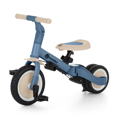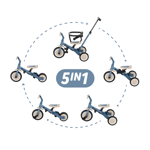 Multifunkční tříkolka určená pro děti od 1,5 do 5 let nebo do 25 kilogramů. Je to nejen dopravní prostředek pro přesun a učení se rovnováhy, ale také společník pro rostoucí dítě během mnoha vývojových fází. Promyšlené měnění se kola se přizpůsobuje potřebám děťátka podle toho, jak se vyvíjejí jeho motorické schopnosti. Zpočátku je to tříkolka s možností asistence rodiče, zatímco konečná verze je standardní kolo s pedály, bez jakýchkoli dalších podpůrných prvků. Díky takovým změnám můžete pomoci svému dítěti naučit se jezdit na dvou kolech.