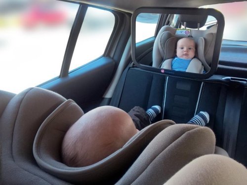 Velké,vypouklé zrcadlo pro 360 ° pohled na vaše dítě bylo navrženo tak, abyste viděli na dítě v autosedačce otočené proti směru jízdy. Dítě v zrcátku pozoruje sebe i vás.