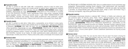 UPOZORNĚNÍ! Přečtěte si pokyny a uložte si je pro budoucí použití. Nikdy nepřidávejte šňůrky nebo stužky. Vyžaduje montáž pouze dospělou osobou. Určeno pro použití pouze v autě. Nikdy nenechávejte dítě bez dozoru. Výrobek není hračka. Pokud zjistíte opotřebování nebo poškození, výrobek nepoužívejte. Chraňte před ohněm. Plastový obal zničte nebo uchovávejte mimo dosah dětí.