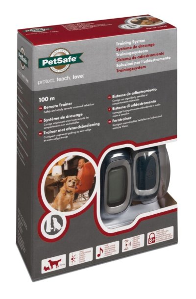 Pomocí vysílače s dosahem až 100 m můžete snadno zlepšit komunikaci mezi Vámi a Vaším psem. Vysílačem vyšlete signál, který aktivuje tréninkový obojek Vašeho psa. Díky třem možnostem výcviku - tón, vibrace a statická stimulace - Vám toto výcvikové zařízení může pomoct vycvičit psa v krátkém čase. Výcvikový systém PetSafe® 100m zajišťuje komunikaci se psem na krátkou vzdálenost, a tak je skvělý např. pro výcvik doma či na zahradě. Toto zařízení je vhodné zejména pro malé až středně velké psy.