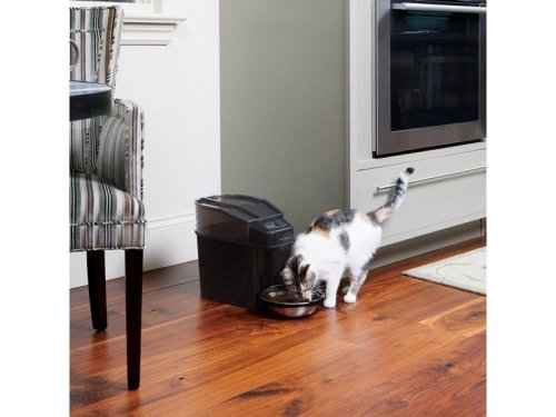 Krmítko používá k dávkování krmiva speciální pás, který dávkuje až 12 jídel denně. Podavač funguje s většinou suchých granulí a polovlhkých krmiv pro domácí zvířata. Krmivo je bezpečně uložené a čerstvé díky uzamykatelnému víku zásobníku. Velikost porcí lze nastavit od 29 do 946 ml tak, aby vyhovovala jedinečným potřebám vašeho mazlíčka. Pro psy, kteří potravu hltají, můžete využít funkci pomalého dávkování, kdy se potrava dávkuje postupně po dobu 15 minut. Vyjímatelnou misku z nerezové oceli lze mýt v myčce na nádobí. Krmítko napomáhá udržení správné hmotnosti domácího mazlíčka a Vám dodá větší svobodu při plánování denního režimu a klid, že je o Vašeho miláčka postaráno i ve Vaší nepřítomnosti.