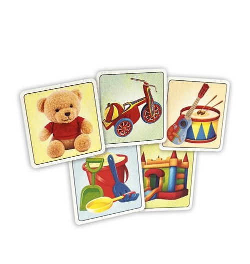 Pexeso Hračky v krabičce. Balení obsahuje 64 karet (32 párů) + 2 karty s pravidly. Rozměr krabičky 8x8x2,5 cm.