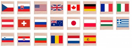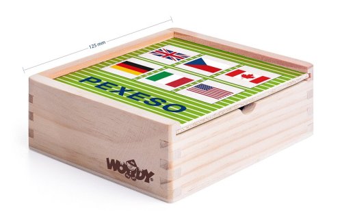 Hra pexeso je vhodná pro trénink paměti. Přidanou hodnotou této varianty je i její edukativní náplň. Dítě se nenásilně naučí vlajky 22 států včetně České republiky a Slovenska. | Věk: 3+ | Rozměr: 12 x 12 cm
