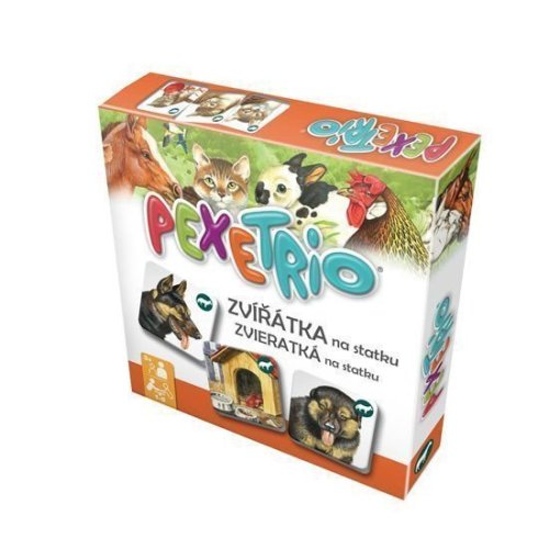 Pexetrio ZVÍŘÁTKA NA STATKU jsou didaktické a zábavné hry, ve které se naučíte pojmenovat domácí zvířata a mláďata, poznat jejich prostředí a jejich produkty. Zdokonalené pexeso nabízí několik herních variant. Pexetrio ZVÍŘÁTKA NA STATKU jsou zábavné hry inspirovaná pexesem, které děti zároveň i vzdělávají. Hráči se naučí pojmenovat a rozeznat domácí zvířata a mláďata, poznat jejich prostředí a jejich produkty. podle hesla „škola hrou“. Kromě toho, že si hráči osvojí rozeznávat různá hospodářská zvířata zábavným způsobem, hra také napomáhá rozvíjet jejich logické myšlení a trénovat paměť hledáním trojic kartiček se stejnými zvířecími druhy. Hra obsahuje odolné kartičky z tvrdého kartonu o velikosti 58 x 58 mm, hrací archy pro několik variant doplňkové hry LOTO-TRIO pro nejmenší hráče a mini encyklopedii, která obsahuje základní informace o jednotlivých druzích zvířat a návody na všechny herní varianty. Princip hry umožňuje používat různé varianty hry pro různě staré hráče. Hru mohou hrát již nejmenší děti od 2-3 let ( viz hra LOTO-TRIO) , dále děti předškolního věku (PEXE-DUO), školní děti, teenageři i dospělí hráči a senioři. Při hře se otáčejí TŘI kartičky a hledají se TROJICE, které patří k sobě! Každá trojice kartiček je opatřena stejným identifikačním znakem. Hráč, který najde nejvíc trojic, vyhrává. Herní kartičky mohou velmi dobře sloužit ve školkách a školách jako edukativní pomůcky. Hru produkují a vyrábí čeští výrobci.