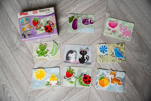 Při hraní s Velcro se budete učit barvy, trénujete mluvení a slovní zásobu, jemnou motoriku a koordinaci ruka-oko. Jakou barvu má tvoje krásná jahůdka nebo zdravý lilek? Co je uvnitř?Sada obsahuje 8 pružných plastových destiček se suchým zipem a 16 samostatných dílků, které umístíte na destičky pomocí suchého zipu. Díky této vychytávce jednotlivé díly jen tak nespadnou a budou držet na správném místě. Všechny části jsou vyrobené z odolného, ale tenkého plastu se speciální povrchovou úpravou, která je dětem příjemná na dotek. Jak hrát? Berte jednotlivé dílky jeden po druhém a povídejte dětem co na nich je.Potom vezměte destičku s obrysy předmětů a vybídněte dítě, aby našlo správný předmět pro každý obrys a připevnilo ho pomocí suchého zipu na správné místo. Hlavní vlastnosti: zlepšuje motorické schopnosti trénuje vyjadřování a mluvenou řeč rozvíjí myšlení a paměť upevňuje udržení pozornosti