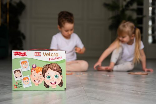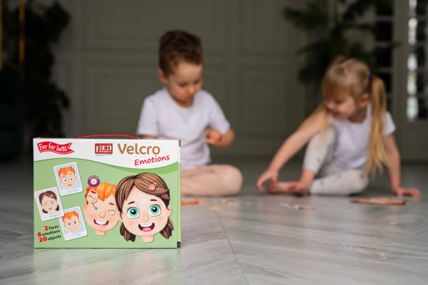Poskládejte a poznejte výrazy tváře a trénujte svou emoční inteligenci. Zjistěte více o vlastních emocích a pokuste se uhodnout co cítí vaší blízcí nebo kamarádi. Co je uvnitř?V krabičce najdete 2 plastové obličeje, 6 papírových karet s vyobrazením emocí a 20 dílů obličeje., které umístíte na destičky pomocí suchého zipu. Díky této vychytávce jednotlivé díly jen tak nespadnou a budou držet na správném místě. Všechny části jsou vyrobené z odolného, ale tenkého plastu se speciální povrchovou úpravou, která je dětem příjemná na dotek. Jak hrát?Hra obsahuje několik karet s různými emocemi a dva obličeje - dívku a chlapce. Vezměte jednu kartu s vyobrazenou emocí a ukažte jí dítěti. Požádejte ho, aby pro výraz obličeje vybral odpovídající oči, ústa, nos a "přilepil" je pomocí suchého zipu na plastovou destičku s prázdným obličejem. Vyzkoušejte sami zopakovat výraz na své tváři a povzbuďte dítě aby udělalo to samé!Postupte na další úroveň Emoční Inteligence!Poproste dítě, aby našlo oči, nos a ústa pro přesně opačnou emoci, než je nakreslená na kartě. Proberte spolu s děckem nejemotivnější okažiky dnešního dne a řekněte si, při čem se takto cítilo. ...a co se Ti před tím stalo? Zkuste společně najít důvod. Vyzkoušejte si také jednotlivé emoce přímo na svojí tváři. Daří se to? ÚdivHněvRadostSmíchSmutekZnechucení Hlavní vlastnosti: zlepšuje motorické schopnosti trénuje vyjadřování a mluvenou řeč rozvíjí myšlení a paměť upevňuje udržení pozornosti