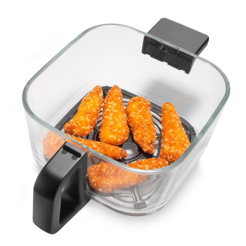 LED displej s dotykovým ovládáním Objem 5,5 l Zdravější způsob vaření 8 programů vč. manuálního nastavení a rozmrazování 360° průhled pro kontrolu přípravy Skleněná fritovací nádoba Nastavení teploty 40 - 200 °C Vnitřní světlo Materiál: plast / sklo Příkon: 1 200 W Napětí a frekvence: 220-240 V, 50/60 Hz Rozměry fritézy (V x Š x H): 248 x 297 x 288 mm Rozměry nádoby (V x Š x H): 138 x 240 x 356 mm