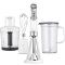 Specifikace Výkonný a tichý 800 W motor Mixovací nástavec se čtyřmi břity v trojúhelníkovém krytu Smart speed control Pohodlný úchop „Pistol grip“ LED indikátor provozu Příslušenství: mixovací nástavec, sekáček 650 ml, šlehací metla, mixovací nádoba 1 l, držák