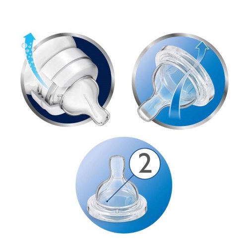 Silikonový dudlík AVENT je navržen tak, aby svým tvarem a funkcí co nejvíce připomínal maminčin prs. Má speciální patentovaný okraj, který funguje jako jednosměrný ventil. Dudlík umožňuje proudění vzduchu do lahvičky během krmení, čímž zamezuje vzniku vakua v lahvičce. Dítě se nemusí dudlíku při krmení pouštět a může pít souvisle jako při kojení bez polykání vzduchu. Právě polykaný vzduch během krmení vyvolává pláč způsobený bolestivou kolikou nebo nadýmáním.