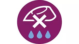 Systém Drip-stop zabraňuje úniku tekutiny z žehličky, aby při jakémkoliv nastavení teploty nevznikaly skvrny způsobené kapkami vody a abyste mohli žehlit bez obav.