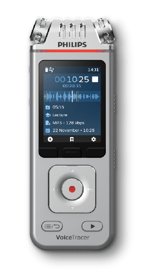 Vestavěný mikrofon: 2 všesměrové mikrofony pro stereofonní záznam, 1 směrový mikrofon pro nahrávání z dálky Formát nahrávek: MPEG1 layer 3 (MP3), PCM (WAV) Kvalita nahrávek: MP3 (8, 32, 64, 96, 128, 192, 256, 320 kb/s), PCM (22 kHz / 16 bitů, 44,1 kHz / 16 bitů, 48 kHz / 16 bitů, 96 kHz / 24 bitů) Zvukové scény: Poznámka, rozpoznání řeči, rozhovor, přednáška, jednání, hudba, vlastní Doba záznamu (vestavěná paměť): 2147 h (MP3, 8 kb/s), 536 h (MP3, 32 kb/s), 268 h (MP3, 64 kb/s), 178 h (MP3, 96 kb/s), 134 h (MP3, 128 kb/s), 89 h (MP3, 192 kb/s), 67 h (MP3, 256 kb/s), 53 h (MP3, 320 kb/s), 24 h (PCM, 22 kHz / 16 bitů), 12 h (PCM, 44,1 kHz / 16 bitů), 11 h (PCM, 48 kHz / 16 bitů)