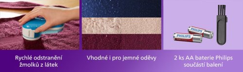 Noste své oblíbené kousky oblečení mnohem déle! S výkonným odžmolkovačem Philips během několika okamžiků zlepšíte jejich vzhled a budete je opět nosit s radostí. Přístroj je vybavený břitem, který za jednu minutu vykoná až 8 800 otáček pro ty nejlepší výsledky. Na jeho hlavici najdete otvory tří velikostí pro odstranění různě velkých žmolků. Hodí se i k úpravě pokrývek a dalších tkanin. Sebrané žmolky se koncentrují v odnímatelném zásobníku, který lze snadno vysypat. Součástí balení je kryt pro odžmolkování velmi jemných látek, čisticí kartáček a 2 ks AA baterie Philips.