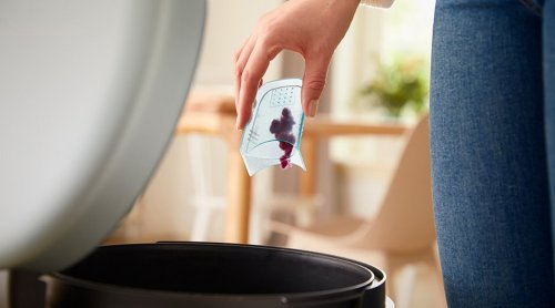 Odstraněné žmolky z tkanin se koncentrují v zásobníku přístroje, který je vyjímatelný a lze jej snadno vysypat do odpakového koše.