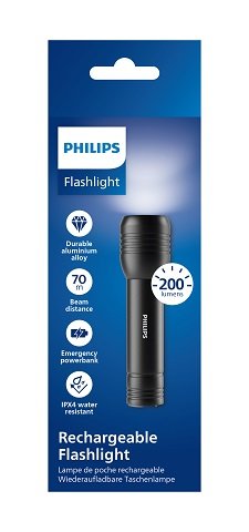 Hliníková dobíjecí svítilna Světelný výstup 200lm Voděodolná Nouzová powerbanka Režim: High – Low – stroboskop 3,7V 1500mAh dobíjecí baterie Vzdálenost paprsku 70m Doba nabíjení: 3,5 hodiny Nabíjecí konektor micro USB