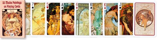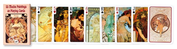Hrací karty francouzského typu s motivem ilustrací Alfonse Muchy.