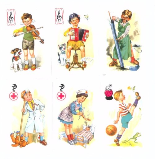 Hrací karty pro hru Černý Petr s veselými obrázky dětí.