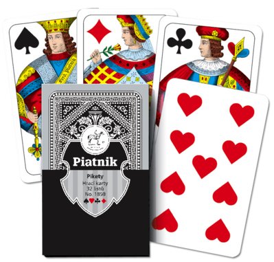 Pikety - klasické karty francouzského typu (7,8,9,10,J,Q,K,A), se kterými lze hrát Mariáš nebo Prší.