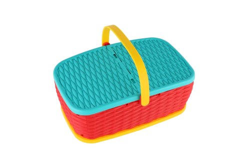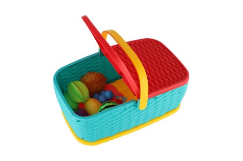 Hurá na piknik! Barevný plastový košík plný ovoce a zeleniny, které si děti mohou „nakrájet“ pomocí bezpečného plastového nože. Jednotlivé kousky jsou spojeny suchým zipem a lze je znovu a znovu spojovat. Skvělá hračka pro rozvoj jemné motoriky, fantazie i hry na kuchaře. Rozměr balení: 28 × 20 cm Vhodné pro děti od 3 let