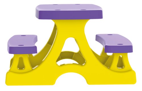 Piknikový stolek se dvěmi lavicemi z kvalitního plastu žluto-fialový.