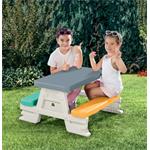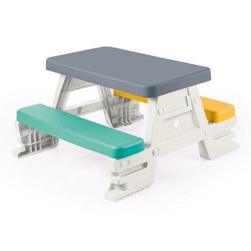 Piknikový stůl s lavicemi potěší malé kluky i holky. Stůl je vhodný pro vnitřní i venkovní použití. Děti mohou stoleček používat pro své hry, při kreslení a různých výtvarných činnostech. Vyrobeno z kvalitního a odolného materiálu. Nosnost 50 kg. Váha: 5,2 kg. Rozměr výrobku: 43 x 77 x 71 cm. Balení: 50,5x17,5cm. Věk 24m+
