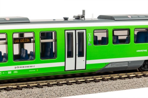 Novinka roku 2025 v atraktivním barevném provedení s označením společnosti ČD je precizně vyrobený model propracovaný do nejmenších detailů. Jedná se o designovou variantu dieselové jednotky Siemens Desiro ČD BR 642. Díky vhodnému rozhraní NEM 652 lze jednoduše digitálně dovybavit. Specifikace: napájení - DCanalogové ovládání délka s nárazníky - 479 mmspojka NEM + krátké spřáhlominimální rádius - 358 mmdigitální rozhraní - NEM 652venkovní osvětlení - ano - bílá/červená svítí v závislosti na směru jízdypřepínatelné vnitřní osvětlení z výrobyzvuk - ne - možno dovybavit zvukovým dekodérem PIKO (56581)speciální spřáhlo pro vícečlenné řazení je součástí balení Hlavní vlastnosti: novinka roku 2025realistické barevné provedenídetailní zpracováníatraktivní design