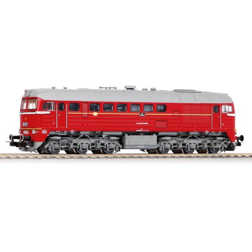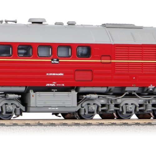 Atraktivní model šestinápravové dieselelektrické lokomotivy T 679.1 „Sergej“ Československých státních drah, sloužící zejména k tažení těžkých nákladních vlaků. Typ M62 patřil mezi vůbec nejvýkonnější stroje velmi hojně zastoupené v zemích východního bloku. Vyráběny byly až do přelomu tisíciletí a ještě i dnes je lze vidět v aktivní službě u Maďarských státních železnic. Modelu na první pohled dominuje mohutný a podrobně zpracovaný podvozek s pečlivě ztvárněnými detaily zavěšení a pneumatického systému brzd. Výlisek vysoko posazené karoserie důsledně zachycuje mřížky ventilace, víka a dvířka obslužných zařízení i jemné linie krytí. Charakteristickými postranními okénky lze nahlížet do členitého intieriéru strojovny. Prvotřídní lakování dává poutavě vyniknout zejména řadě chromovaných prvků na čelech. Značení a provozní detaily jsou díky nejkvalitnějšímu potisku dokonale ostré a jasně čitelné. Úprava střechy věrně odráží skutečné stroje, a pozdější série jsou tak snadno rozeznatelné podle přítomnosti skříně tlumiče výfuku. Pro účely vystavení ve vitríně lze model doplnit detaily táhlového ústrojí, které jsou součástí balení. Pohon zajišťuje výkonný motor s rozměrnými setrvačníky a moment je přenášen prostřednictvím dvojice úhlopříčně uspořádaných bandážovaných kol na vnitřních nápravách, poháněna je však hned čtveřice dvojkolí. Mohutný a precizně zhotovený podvozek pak významným dílem přispívá k mimořádným jízdním vlastnostem modelu a pomáhá autenticky zprostředkovat parametry charakteristické předloze. Trojice světel na čelech se rozsvěcí a mění barvu v závislosti na směru jízdy. Osvětlením je dále vybavena jak kabina strojvedoucího, tak i strojovna. Individuálního řízení všech světel lze pak dosáhnout vestavbou digitálního ovládání. Model je možno rozšířit zvlášť určeným digitálním dekodérem se zvukovým modulem a reproduktorem. Hlavní vlastnosti:šestice nápravmotor s dvojicí setrvačníkůdvojice bandážovaných hnacích kolsvětla s přepínáním barvy dle směru jízdyosvětlení interiérurozhraní PluX22 dle NEM 658šachta dle NEM 362 s kinematikou krátkého spřáhla Dokumentace:obecné informace k T 679.1 (M62) (CZ)obecné informace k příbuzným modelům V 200 (M62) (DE, EN, FR, PL)návod k obsluze a seznam náhradních dílů modelu č. 52819 (DE, EN, FR, CZ)