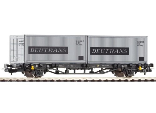 Dvounápravový plošinový vůz DR třídy Lgs579 s dvěma volně uloženými a detailně vyvedenými dvacetistopými kontejnéry Deutrans. Zaujme barevně kontrastními detaily, propracovaným výliskem a potiskem nejvyšší kvality. Pro vagón se nabízí doplňky v podobě rozmanitých kontejnerů. Hlavní vlastnosti: dvojice nápravdvojice volně uložených 20′ kontejnérůšachta dle NEM 362 s kinematikou krátkého spřáhla Dokumentace: Návod k obsluze a seznam náhradních dílů modelu č. 57747 (DE, EN, F, ITA, E, CHN, NL, RUS) Německá firma PIKO se zabývá výrobou modelů lokomotiv, vagónů, start setů, kolejnic a kolejových setů. Klasickým výrobkem, kterým se firma PIKO celosvětově proslavila, je modelová železnice. Modely železnice jsou vysoce detailní. Firma PIKO vyrábí modely ve velikostech H0 (měřítko 1:87), G (měřítko 1:25), TT (měřítko 1:120) a N (měřítko 1:160). PIKO modelové železniční výrobky pokrývají nejrůznější potřeby modelářů. Jsou pravidelně testovány a oceňovány v domácím i zahraničním tisku.