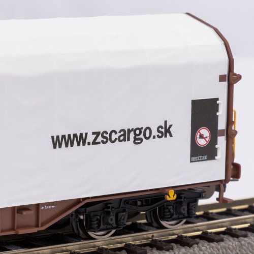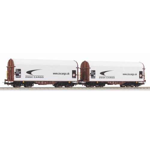 Dvojice čtyřnápravových vozů s plachtovým krytem Shimmns Železniční společnosti Slovensko, určených k přepravě svitků plechu. Nabízí propracované výlisky podvozku i čelních stěn s detaily mechanismu jištění plachty. Krytí lze sejmout, a odhalit tak členitý vnitřní prostor s lůžky pro náklad (součástí balení je jeden svitek). Vůz zdobí atraktivní, barevně kontrastní detaily v podobě madel a kotviček. Vysoce kvalitní lakování a ostrý potisk zachycují i nejmenší podrobnosti předlohy. Samozřejmostí jsou precizně uložená dvojkolí zajišťující prvotřídní jízdní vlastnosti. Hlavní vlastnosti:čtveřice nápravsnímatelné krytí, součástí je vzorek nákladušachta dle NEM 362 s kinematikou krátkého spřáhla Dokumentace:návod k obsluze a seznam náhradních dílů modelu č. 58258 (DE, EN, FR, IT)