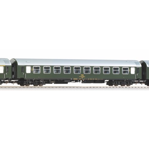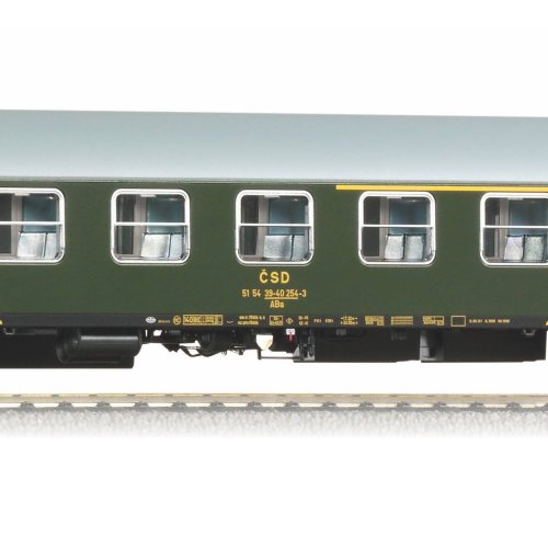 Sada čtyřnápravových vagónů typu UIC‑Y, oddílového osobního vozu 1. a 2. třídy ABa, oddílového osobního vozu 2. třídy Ba a lehátkového vozu 2. třídy Bac Československých státních drah. Věrně reprodukuje soupravy mezinárodních rychlíků Ex 250 a Ex 251 „Západní expres“, zajišťujících spojení mezi Prahou a Frankfurtem nad Mohanem na přelomu 60. a 70. let. Precizní výlisky karoserie spolu s lakováním zachycují i nejmenší detaily okenních rámů a dveří. Střechy vozů jsou ztvárněny pečlivě, s veškerými podrobnostmi výdechů i klapek vzduchotechniky. Čela nesou věrně reprodukované pryžové návalky. Dokonale průzračnými okny je možno nahlížet do důkladně zpracovaných interiérů. S maximálním důrazem na autenticitu byly zhotoveny rovněž podvozky, na kterých je možno pozorovat podrobně zpracovaná táhla a válce obslužných zařízení. Vozy jsou samozřejmě připraveny k dovybavení krátkými spřáhly, aby mohly být dokonale přizpůsobeny k sestavování dlouhých souprav. Model osobního vagónu nabízí také možnost snadného osazení zvlášť určeným LED modulem interiérového i koncového osvětlení osvětlení a ovládacím dekodérem. Pro reprodukci dobových souprav lze zvláště doporučit některou z dieselových lokomotiv T679.1 „Sergej“ (č. 52819 a 52814), nebo elektrických lokomotiv S 499.1 „Laminátka“ (č. 51380 a 51382), které naleznete v naší nabídce. Hlavní vlastnosti:čtveřice nápravmožnost dovybavit osvětlovacími moduly a ovládacím dekodéremšachta dle NEM 362 s kinematikou krátkého spřáhla Dokumentace:návod k obsluze a seznam náhradních dílů modelu vozu ABa (DE, EN, FR, NL)návod k obsluze a seznam náhradních dílů modelu vozu Ba (DE, EN, FR, NL)návod k obsluze a seznam náhradních dílů modelu vozu Bac (DE, EN, FR, NL)