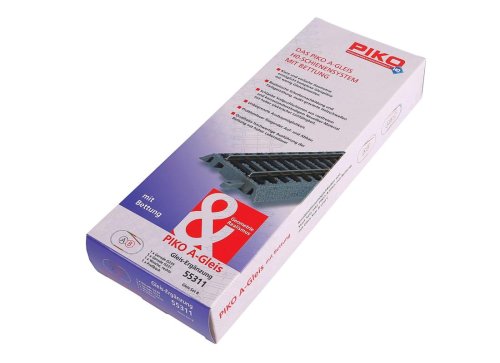 Sada kolejí s detailní reprodukcí dřevěných pražců na štěrkovém podloží, ve věrných barvách. Zahrnuje dvojici rovných úseků s jednoduchou výhybkou na kusou kolej. Ke kompletaci samostatně napájeného oválu (viz ilustrační obrázek) nutno doplnit o obloukové koleje v příslušném množství a dvojici rovných kolejí, jedné s přípojem pro napájecí svorku. Výhybku lze ručně ovládat. Nabízí se také dálkově ovládaný přestavník, pro který je zde uchystané připojení a je vhodné jej doplnit příslušným podložím. Plocha základny: 158x88 cmMinimální konstrukční plocha: 168x98 cm Hlavní vlastnosti: dva rovné úseky s výhybkou na kusou kolejvčetně podloží Tato sada obsahuje: kolej rovná G239 s podložím - 55400 (1 ks)kolej rovná G231 s podložím - 55401 (3 ks)kolej rovná G231 (s vybráním vlevo) s podložím - 55401 (1 ks)kolej rovná G231 (s vybráním vpravo) s podložím - 55401 (1 ks)výhybka WR jednoduchá (G239/R9) pravá s podložím - 55421 (1 ks)kusá kolej se zarážedlem s podložím - 55446 (1 ks) Dokumentace: Návod k obsluze (DE, EN)Brožura ke kolejivu PIKO H0 A-Gleis (DE, EN)