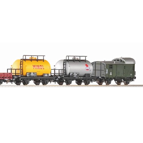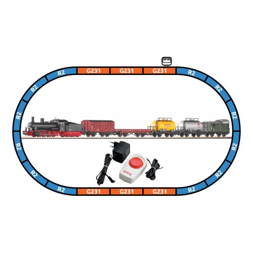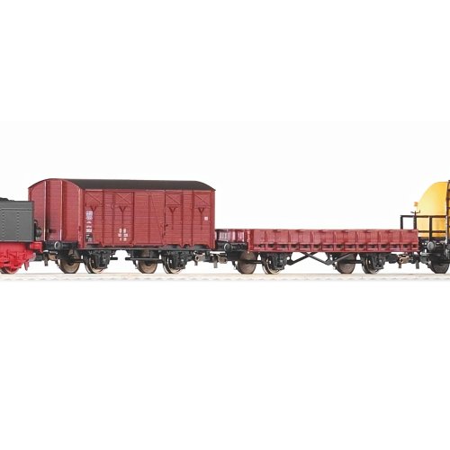 Startovací sada skládající se z parní lokomotivy 0-8-0 BR 55 (G 7.1), pěti nákladních vozů, prodlouženého oválu a analogového ovládání s napájením. Lokomotivu lze dovybavit digitálním dekodérem, návazně také zvlášť určeným zvukovým modulem s reproduktorem, nebo i výrobníkem kouře. Koleje s podložím zajišťují vyšší odolnost a životnost při opakovaném rozebírání. Nákup sady je vhodné doplnit o příslušný spotřební materiál. Plocha základny: 158x88 cmMinimální konstrukční plocha: 168x98 cm Hlavní vlastnosti: analogové ovládáníčtveřice náprav (lokomotiva)světla bílé barvy s přepínáním dle směru jízdytřínápravový tendrrozhraní NEM 652 šachta dle NEM 362 s kinematikou krátkého spřáhladvojice náprav (vagóny)koleje s podložím Tato sada obsahuje: parní lokomotiva BR 55 (G 7.1) DB III - 57550 (1 ks)různé nákladní vozy DB III (5 ks)kolej oblouková R2 s podložím - 55412 (12 ks)kolej rovná G231 s podložím - 55401 (5 ks)kolej rovná G231 s podložím (přípoj pro napájecí svorku) - 55406 (1 ks)podloží pro napájecí svorku - 55447 (1 ks)napájecí svorka ke kolejím analogová - 55270 (1 ks)základní analogový ovladač s napájecím zdrojem - 55003 (1 ks) Dokumentace: Návod k obsluze a seznam náhradních dílů soupravy č. 57123 (DE, EN, F, NL, ITA, E, POL, RUS, CHN, CZ)Návod k obsluze a seznam náhradních dílů modelu č. 57550 (DE, EN, F, NL, ITA, E, POL, RUS, CHN, CZ)