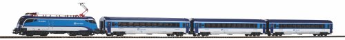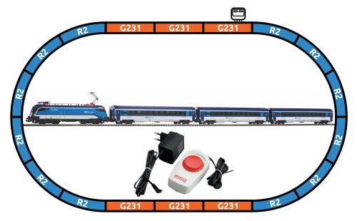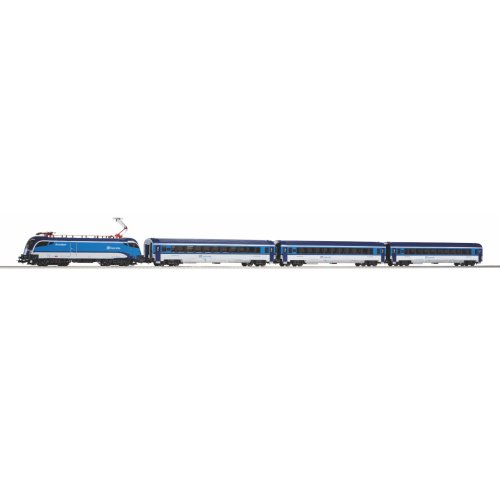 Startovací sada skládající se z elektrické lokomotivy Taurus, třech osobních vozů 2. třídy, prodlouženého oválu a analogového ovládání s napájením. Lokomotivu lze dovybavit digitálním dekodérem. Nabízí se také další vagony odpovídajícího typu a úpravy. Koleje s podložím zajišťují vyšší odolnost a životnost při opakovaném rozebírání. Nákup sady je vhodné doplnit o příslušný spotřební materiál. Plocha základny: 158x88 cmMinimální konstrukční plocha: 168x98 cm Hlavní vlastnosti: analogové ovládáníčtveřice nápravsvětla bílé barvy s přepínáním dle směru jízdyrozhraní NEM 652šachta dle NEM 362koleje s podložím Tato sada obsahuje: elektrická lokomotiva Taurus ČD VI (1 ks)osobní vagon 2. třídy ČD VI (3 ks)kolej oblouková R2 s podložím - 55412 (12 ks)kolej rovná G231 s podložím - 55401 (5 ks)kolej rovná G231 s podložím (přípoj pro napájecí svorku) - 55406 (1 ks)podloží pro napájecí svorku - 55447 (1ks)napájecí svorka ke kolejím analogová - 55270 (1 ks)základní analogový ovladač s napájecím zdrojem - 55003 (1 ks) Dokumentace: Návod k obsluze a seznam náhradních dílů soupravy č. 57179 (DE, EN, F, NL, ITA, E, POL, RUS, CHN, CZ, HUN)
