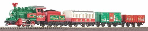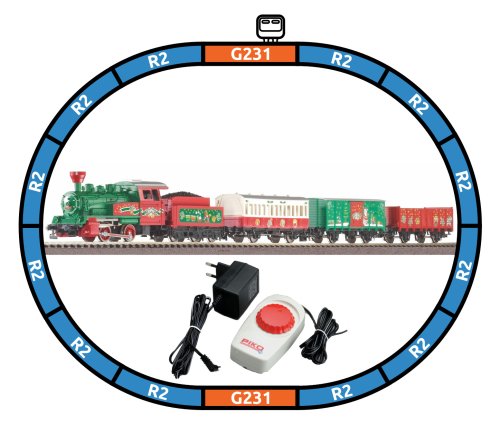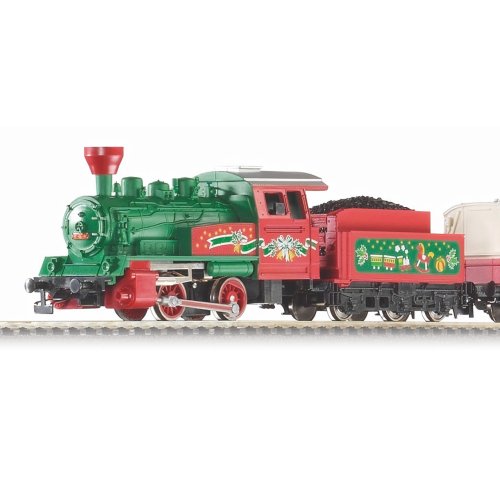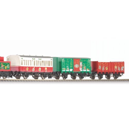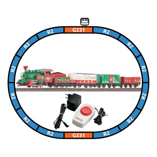 Startovací sada speciální, barevné vánoční soupravy skládající se z parní lokomotivy 0-4-0, jednoho osobního vozu a dvou nákladních, krytého a otevřeného, základního oválu a analogového ovládání s napájením. Koleje s podložím zajišťují vyšší odolnost a životnost při opakovaném rozebírání. Nákup sady je vhodné doplnit o příslušný spotřební materiál. Plocha základny: 110x88 cmMinimální konstrukční plocha: 120x98 cm Hlavní vlastnosti: analogové ovládánídvojice nápravtřínápravový tendrspojovací hák v nestandardní šachtěkoleje s podložím Tato sada obsahuje: parní lokomotiva s tendrem (1 ks)osobní vůz (1 ks)různé nákladní vozy (2 ks)kolej oblouková R2 s podložím - 55412 (12 ks)kolej rovná G231 s podložím - 55401 (1 ks)kolej rovná G231 s podložím (přípoj pro napájecí svorku) - 55406 (1 ks)podloží pro napájecí svorku - 55447 (1 ks)napájecí svorka ke kolejím analogová - 55270 (1 ks)základní analogový ovladač s napájecím zdrojem - 55003 (1 ks) Dokumentace: Návod k obsluze a seznam náhradních dílů soupravy č. 57081 (DE, EN, F, NL, ITA, E, POL, RUS, CHN, CZ) Německá firma PIKO se zabývá výrobou modelů lokomotiv, vagónů, start setů, kolejnic a kolejových setů. Klasickým výrobkem, kterým se firma PIKO celosvětově proslavila, je modelová železnice. Modely železnice jsou vysoce detailní. Firma PIKO vyrábí modely ve velikostech H0 (měřítko 1:87), G (měřítko 1:25), TT (měřítko 1:120) a N (měřítko 1:160). PIKO modelové železniční výrobky pokrývají nejrůznější potřeby modelářů. Jsou pravidelně testovány a oceňovány v domácím i zahraničním tisku.