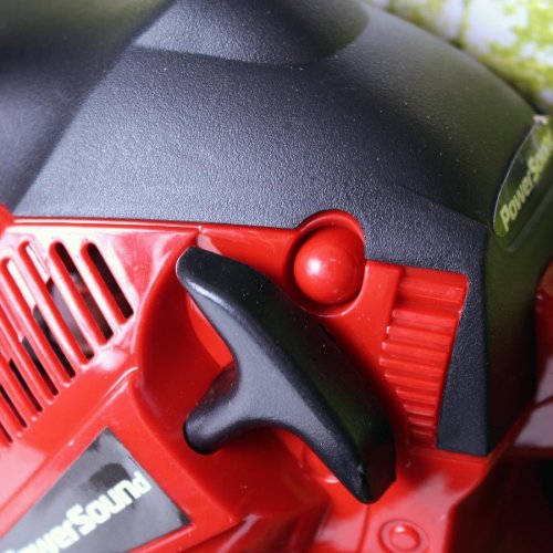 Plastová pila na baterie vydávající reálný zvuk. Má pohyblivý řetěz a její délka je cca 36 cm. Výrobek vyžaduje použití 3 ks baterií typu AA, které nejsou součástí.