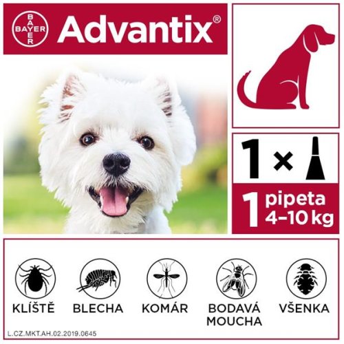 Advantix Spot On vhodný pro malá plemena psů vážící 4-10 kg (1 pipeta).