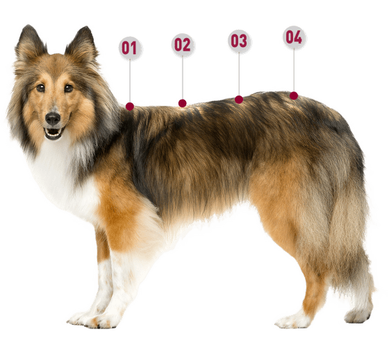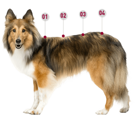 snadná aplikace pipetou přímá aplikace na kůži, na 4 různá místa od ramen až po kořen ocasu