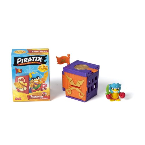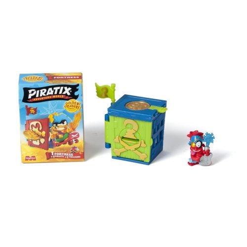 Piratixové objevili několik skrýší rozesetých po Ostrově žraloků. V těchto pevnostech se ukrývají tajemství a poklady… K dispozici je 6 designů k sbírání v různých barvách! Použij exkluzivní minci k vyřešení hádanky, která odemkne dveře – až potom se dostaneš dovnitř! A pokud se odváží nějaký rival proniknout: vystřel ho do vzduchu z katapultu. Dobij ostatní pevnosti soupeřů a vyvěs svou vlajku – budeš mít štěstí a najdeš zlatou pevnost? Nezapomeň zazpívat naplno: „Pirátský život, to je život pro mě!“ Obsah balení:• 1 překvapivá pevnost• 1 překvapivý Piratix• 1 doplněk• 1 exkluzivní vlajka• 1 exkluzivní pokladová mince