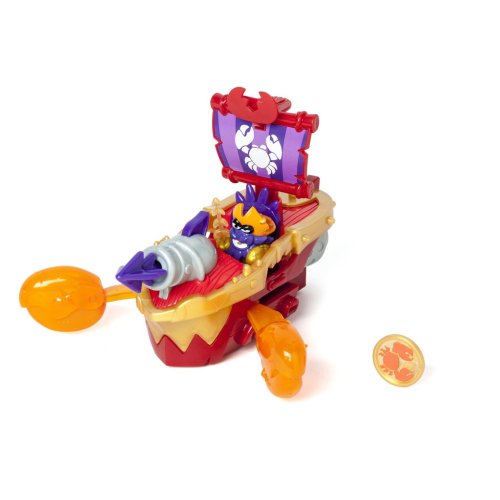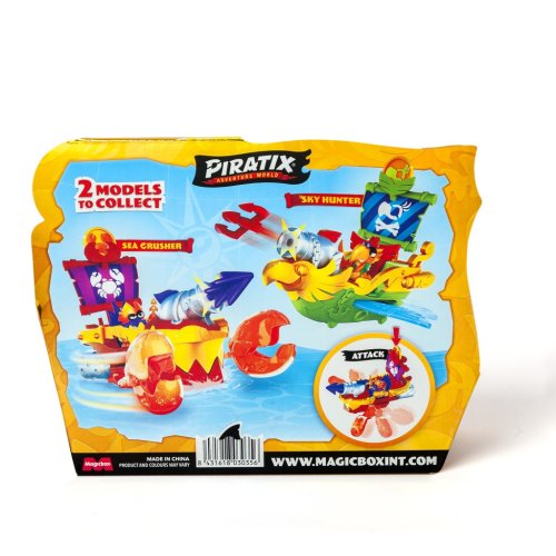 Neptunův vous! Čí je to loď? Je to Sky Hunter a má sílu papouška! Kapitán Wings našel papouščí poklad na Eagle Peak, nejvyšším vrcholu Ostrova žraloků. Dal jeho lodi moc: použij minci k aktivaci a jeho křídla budou divoce mávat, aby dosáhla rychlosti dvou set uzlů! Můžeš také vystřelit z děla s exkluzivní dělovou koulí a potopit jakoukoliv loď – všichni na palubu!Obsah balení:• 1 pirátská loď• 1 exkluzivní Piratix• 1 exkluzivní pokladová mince• 1 doplněk• 1 dělo• 1 dělová koule