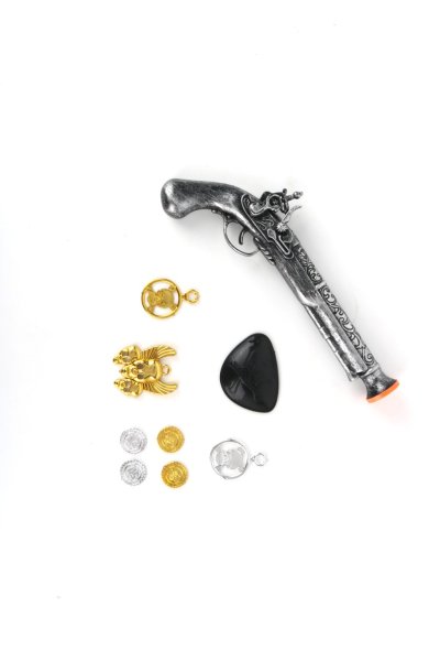 Každý malý pirát zaručeně ocení patřičnou pirátskou výbavu, a proto potřebuje tuto pistoli. Pravá pirátská bitva může začít! Pistoli a doplňky v balení lze také použít jako karnevalový doplněk ke kostýmu!