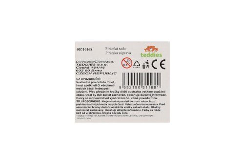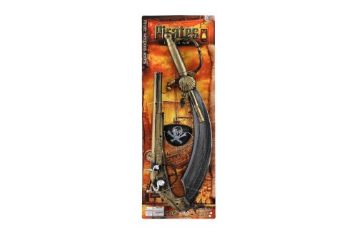 Vzhůru na palubu! Tato pirátská sada promění každého malého dobrodruha v neohroženého mořského vlka. Obsahuje nezbytné vybavení pro každého piráta – meč nebo šavli, klapací pistoli a pirátskou pásku přes oko. Ideální doplněk ke karnevalovému kostýmu, na narozeninovou párty nebo k hrám na piráty. Rozměry balení 19 x 53 x 5 cm Vhodné pro děti od 3 let