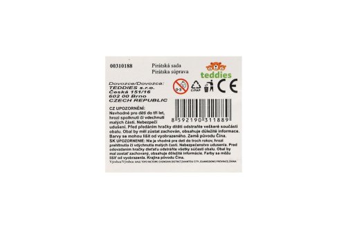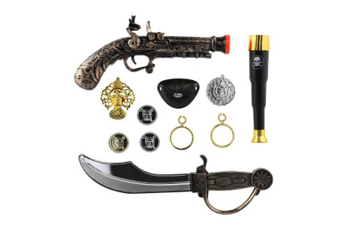 Staň se kapitánem pirátské lodi s touto plastovou pirátskou sadou, která obsahuje vše potřebné pro dobrodružství na moři. Balení na kartě je ideální jako dárek nebo doplněk ke kostýmu na karneval, narozeninovou oslavu či tematickou hru. Rozměry balení 22 x 55 x 4 cm Vhodné pro děti od 3 let