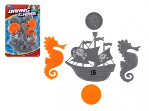 hoďte ze břehu všechny části do vody, skočte šipku a schválně, kolik částí pokladu vylovíte na jeden nádech sada má světlé barvy, aby se daly snadno rozpoznat s touto sadou svým dětem zábavným způsobem můžete zlepšit plavecké dovednosti na jedničku sada obsahuje: 2 mořské koníky, 2 mince a 1 loď