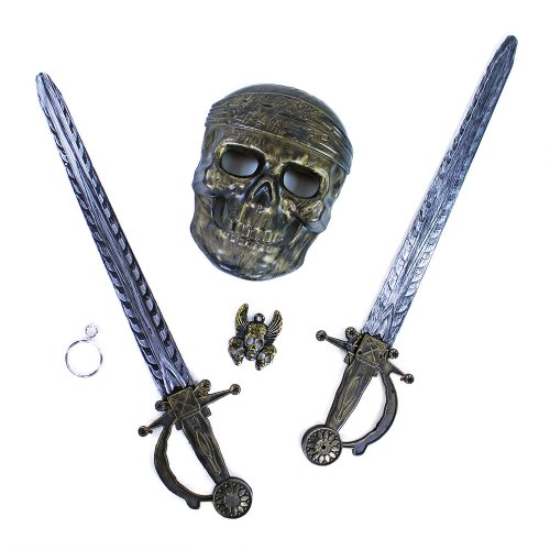 Exkluzivní sada pro všechny malé piráty! Pirátská sada obsahuje dva pirátské meče, masku a další doplňky. Tyto vychytávky jsou ideální nejen ke kostýmu i jen tak na hraní.