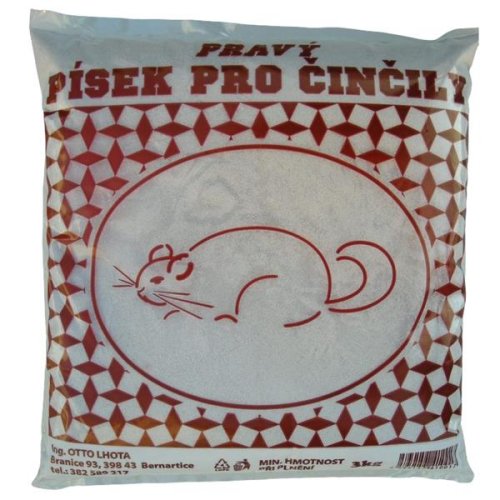 Jemný koupací písek, který odstraňuje nečistoty a mastnoty. Činčily mají velice jemnou a hustou srst. Pro správnou péči o kůži a srst těchto zábavných mazlíčků je nutná koupel v jemném písku. Misku s vrstvou 3 – 5 cm postavte 1 x denně na 30 minut do ubikace. Po koupeli misku vyjměte a zakryjte, aby nedošlo ke znečištění písku. Před dalším vložením do klece je dobré zbavit písek nečistot prosetím přes sítko. Nezapomeňte na pravidelnou výměnu písku. Při výměně umyjte misku.